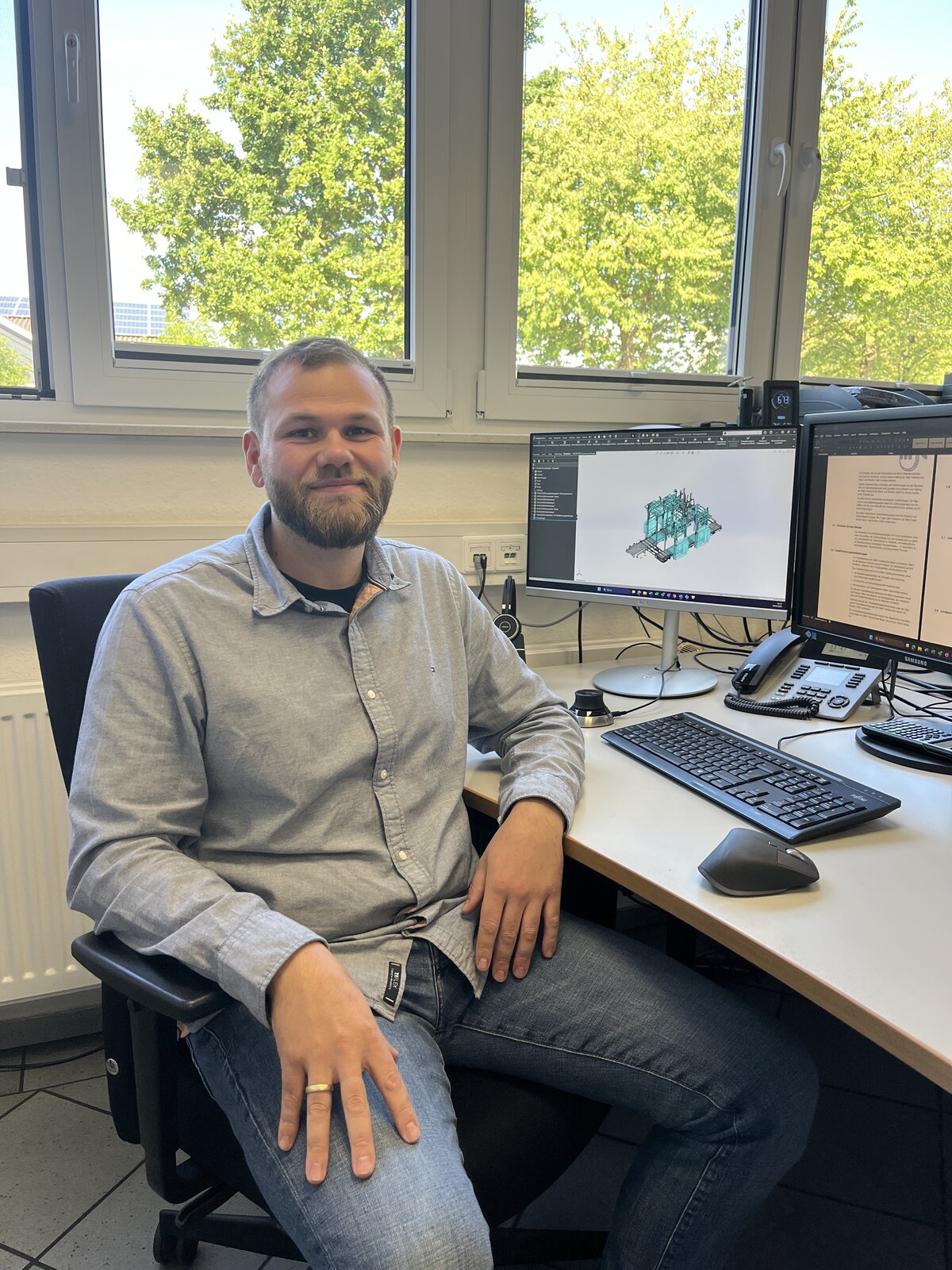Tim Mauser wechselte nach seinem Abschluss intern von der Montage in die Konstruktion und sagt heute: „Ich werde jetzt stärker gefordert, aber genau das wollte ich – der Aufwand hat sich gelohnt.“