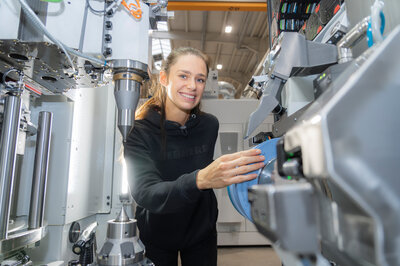 Auch Lena Katharina Weiß, heute Inbetriebnahmetechnikerin bei Liebherr, beschreibt, wie sehr sie über sich hinausgewachsen ist: „Ich bin stolz auf meinen Abschluss - und darauf, dass ich mein persönliches Ziel mit großem Ehrgeiz und Durchhaltevermögen erreicht habe.“