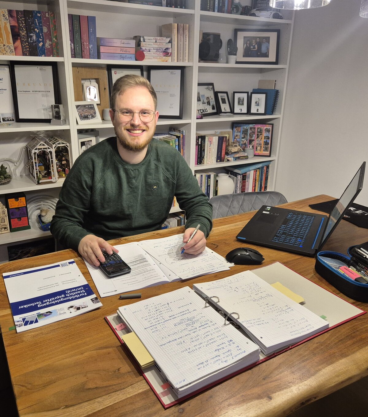 Für David Doster war ein klarer Lernplan entscheidend: „Nur so konnte ich mehrere Prüfungen in kurzer Zeit erfolgreich bestehen.“ Unterstützung fand er bei seinem Team und seiner Familie. Heute ist er stolz, beides gemeistert zu haben – Vollzeitjob und Weiterbildung.